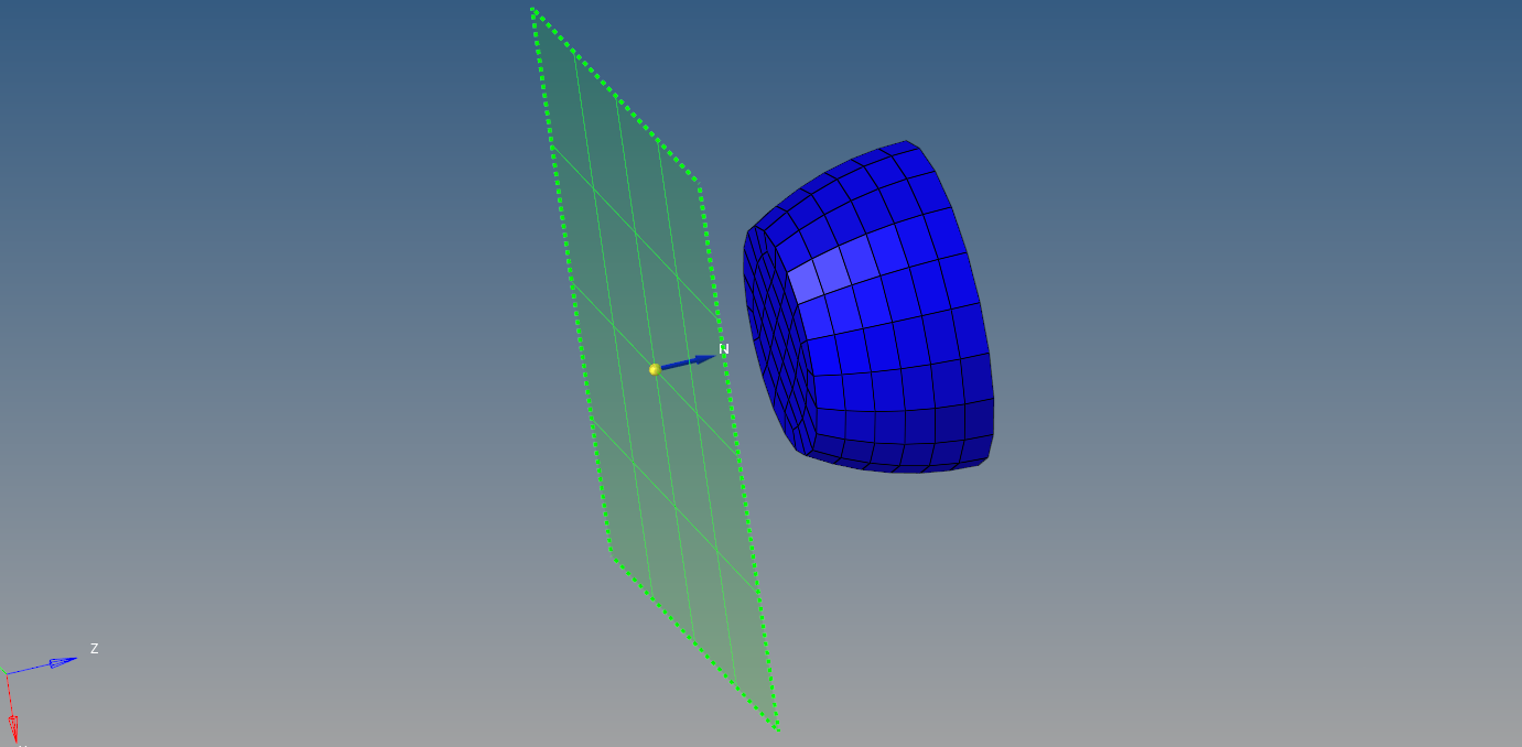 Next, we have to create a Rigid wall. For this, we will again right-click on the white-browser area and go to Create -> Rigid Wall. For assigning the coordinates for the rigid wall we first need to create a temporary node at a distance of 5mm from the bullet and then assign the normal vector as z direction as shown in the image below. Select the velocity set under gmod_ID1, Slide as 2 Sliding with friction and FRIC as 0.3. Refer to the below image.