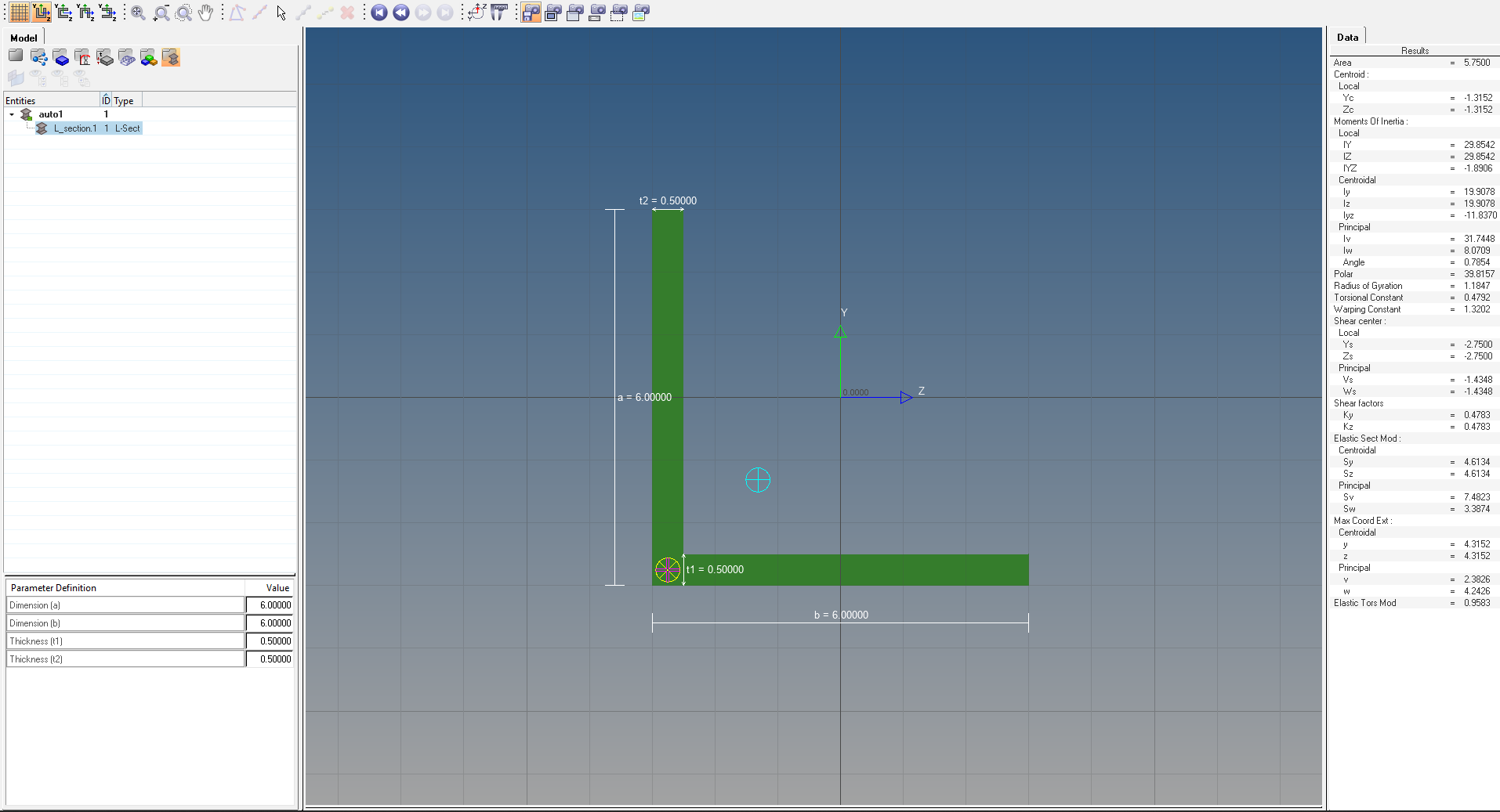The created beam section comes under Beam section collectors. In addition to the above Hyperbeam also gives us the center of mass, moment of area, and radius of gyration for the element.